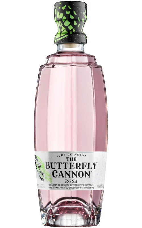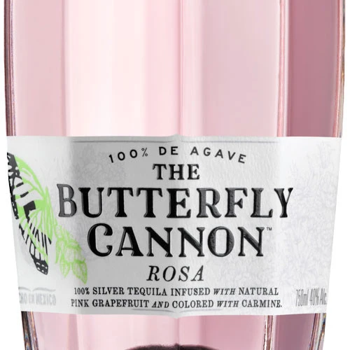 Named after the migration of US butterflies to Mexico, the tequila is produced in Mexico at Destiladora del Valle de Tequila. Butterfly Cannon Rosa gets its pink hue from the pink grapefruit that the silver tequila is infused with. The peel is soaked in tequila, combined with pink grapefruit and grapefruit distillate, filtered, and bottled at 80 proof. The expression is bursting with fresh citrus notes.