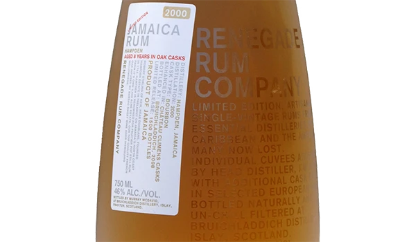 Renegade Rum Company Hampden Jamaica Rum 2000 has notes of bananas and coconuts that are complemented by hints of vanilla and honey. In addition, the rum is rich in ethers, which adds intensity and complexity to its unique flavor profile.