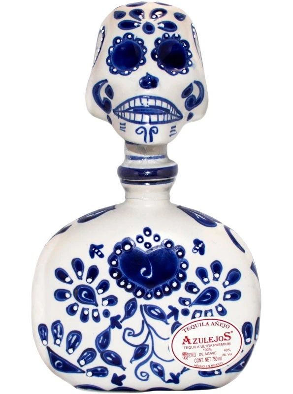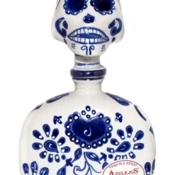 Crafted with 100% blue Weber agave from Jalisco, Mexico, the ripe agaves are harvested once fully matured, which takes between 7 and 10 years. They are then cooked in stone ovens and crushed using a roller mill. After being fermented in stainless steel tanks, the juice is distilled twice using a copper pot still. Los Azulejos Día de Muertos Añejo tequila is aged for 2 years in French oak casks that used to hold cognac, before being bottled at 80 proof. Each bottle is painted by hand on both sides and features a clay Talavera skull-shaped stopper.