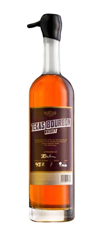 Rio Brazos Texas Bourbon Whiskey is distilled from sweet corn, barley, yeast, water. Every step of production takes place at the distillery. They grind their barley and corn in their very own hammer mill, and the ingredients are mashed and distilled before the homegrown Texas spirit is barreled and bottle onsite.